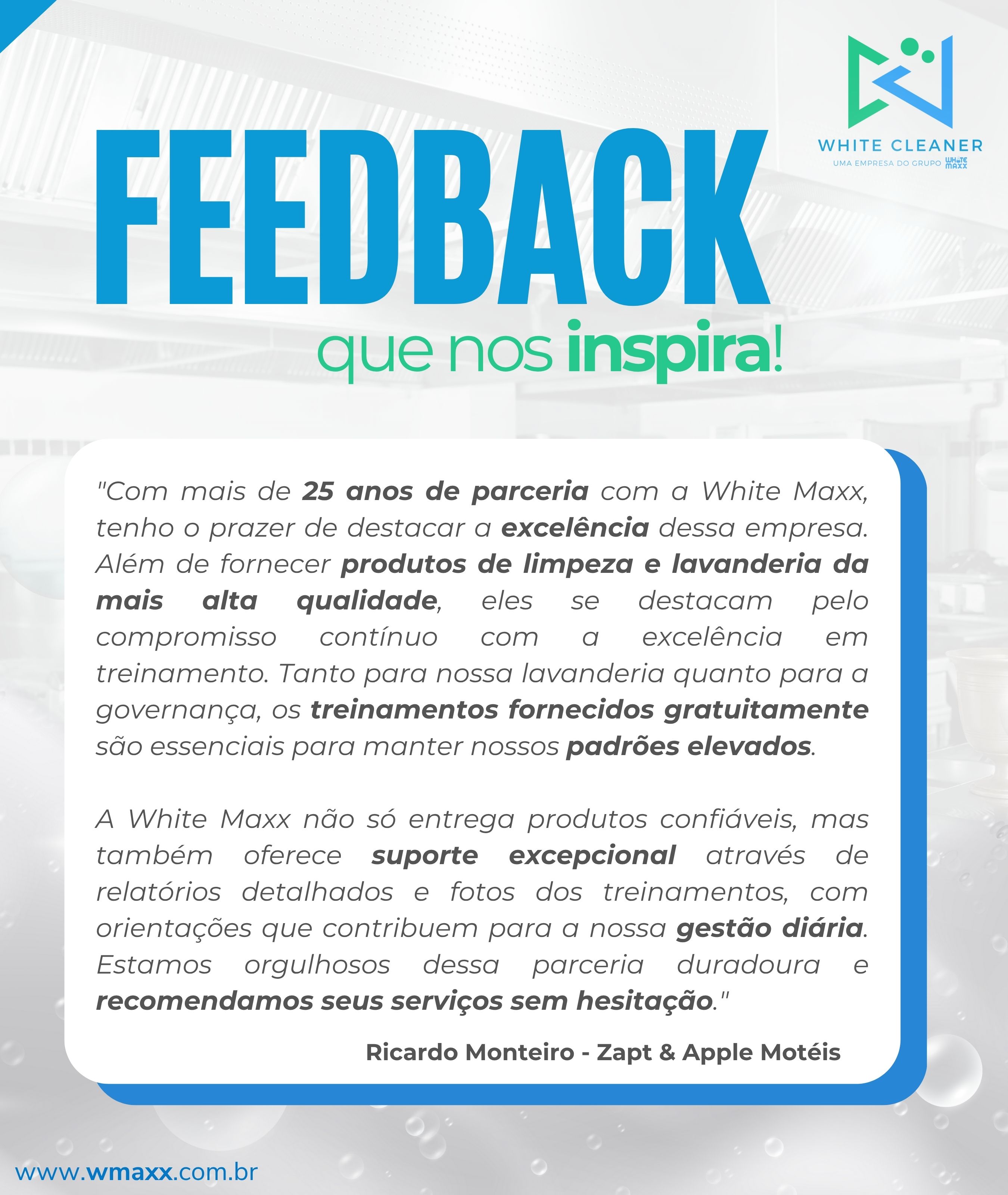 #WhiteMaxx #WhiteCleaner #DepoimentoCliente #LimpezaProfissional #TreinamentoDeExcelência #LavanderiaIndustrial #ParceriaDeValor