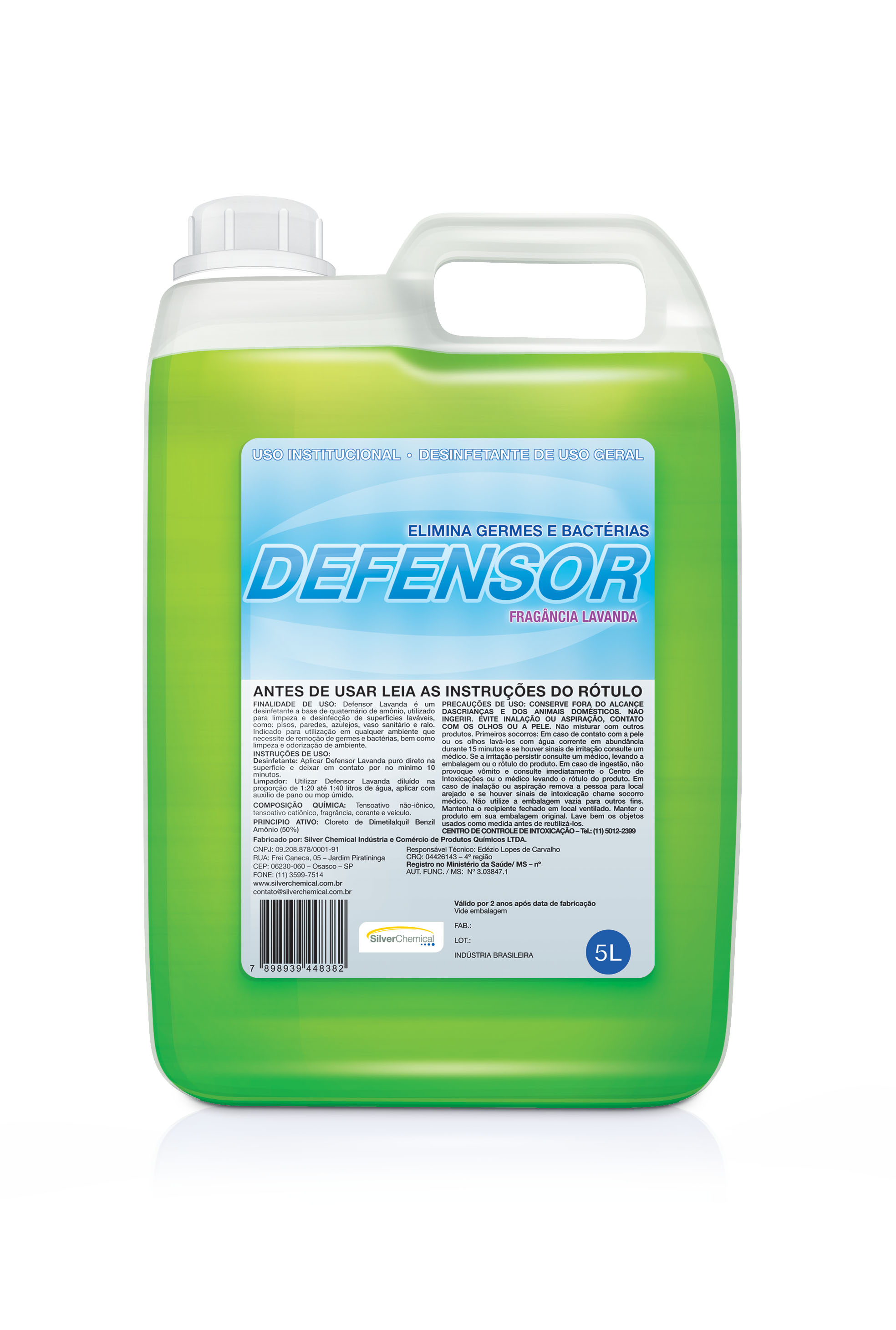 Defensor é um desinfetante a base de quaternário de amônio, utilizado para limpeza e desinfecção de superfícies laváveis. Indicado para utilização em qualquer ambiente que necessite remoção de germes e bactérias.