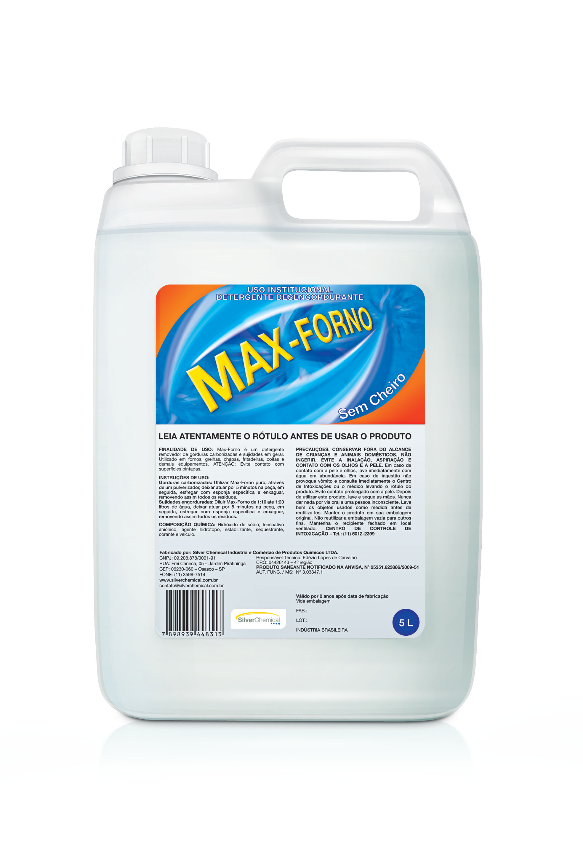 Detergente desengordurante inodoro, utilizado em sujidades em geral e remoção de gorduras carbonizadas, em fornos, grelhas, chapas, fritadeiras, coifas e demais equipamentos.